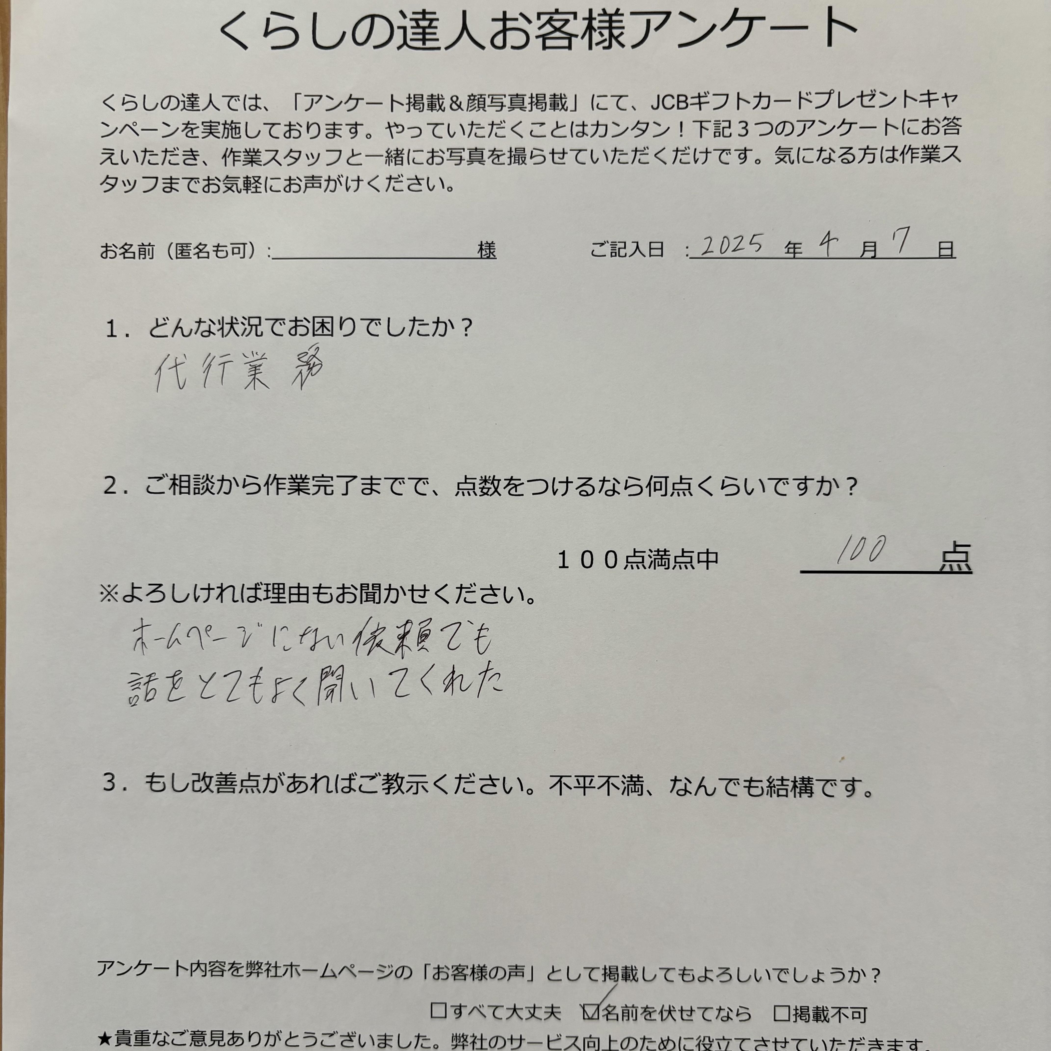 便利屋としてお客様一人ひとりの気持ちを汲み取り、「頼んでよかった」と感じてもらえるよう心がけています。愛媛全域のお客様に満足していただけるよう、スタッフ全員でお困りごと以上の価値を提供することを目指しています。